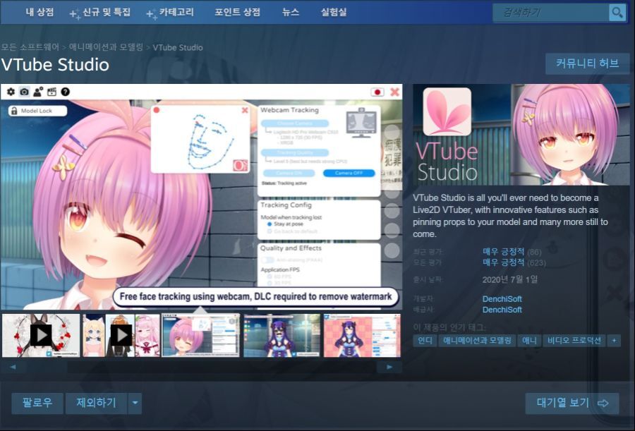 4) 스팀 Facerig 창작마당 https://steamcommunity.com/app/274920/workshop
