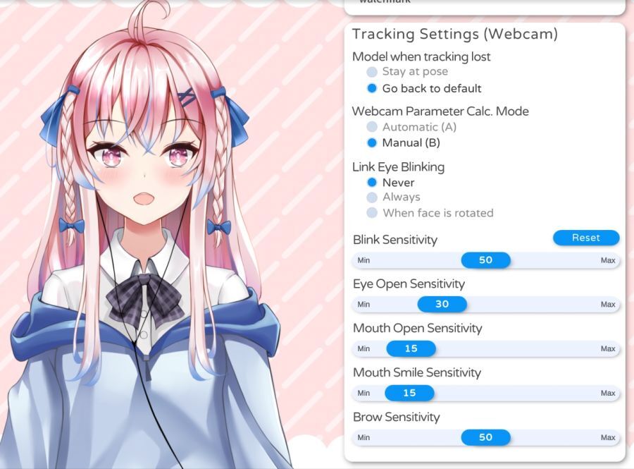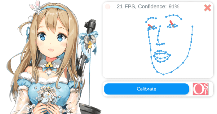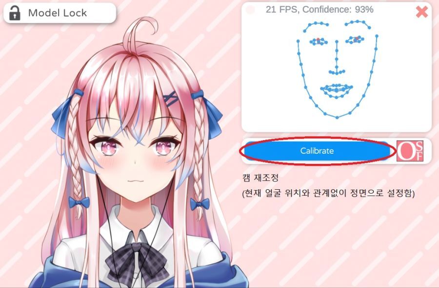 트래킹되는 내 얼굴과 캐릭터의 위치가 틀릴경우 캠을 정면으로 바라보고 캘리브레이트 한번 눌러서 조정해주면 된다