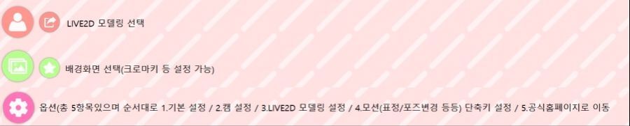 1) Live2D 공식홈페이지 샘플 https://www.live2d.com/ko/download/sample-data
