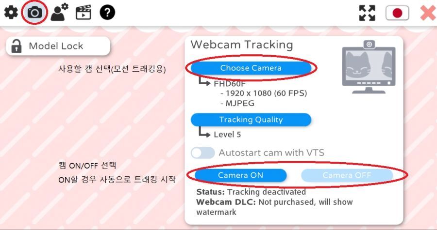 * 캠이 없을경우 핸드폰으로 Vtuber Studio 실행해서 연결하는법과 핸드폰을 웹캠으로 사용하는법 2가지가 있음. 이건 안해봐서 설명 생략.