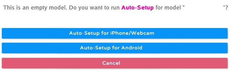 넣으면 이런 창이 뜬다. 선택한 모델링 데이터를 첫 실행 시 셋업하는거라 웹캠/아이폰이면 위, 안드로이드폰이면 중간 선택하고 설치해야한다.